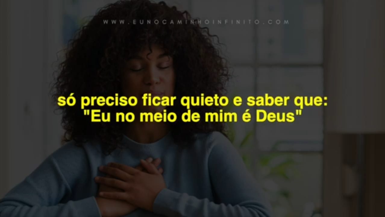 E onde você está, saiba que Deus está. Exatamente onde você está, Deus está, e o nome de Deus, onde Deus está, onde você está, é Eu. E esse Eu é você. Esse é o seu Eu. Esse é o seu Eu antes da forma e depois da forma. Esse é o seu Eu que é para sempre. Esse é o seu Eu permanente. Esse não é o seu eu reencarnado. Esse não é você de carne e osso. Esse não é você que passa pelas provações e tribulações de ser um ser humano. Esse não é você que retorna ao pó e esse também não é você que irá para o céu. Esse Eu está no céu aqui e agora. Esse Eu não tem fronteiras, nem limitações. Esse Eu não tem idade. Esse Eu é livre, ilimitado e presente, esperando para ser vivido como seu próprio Ser.